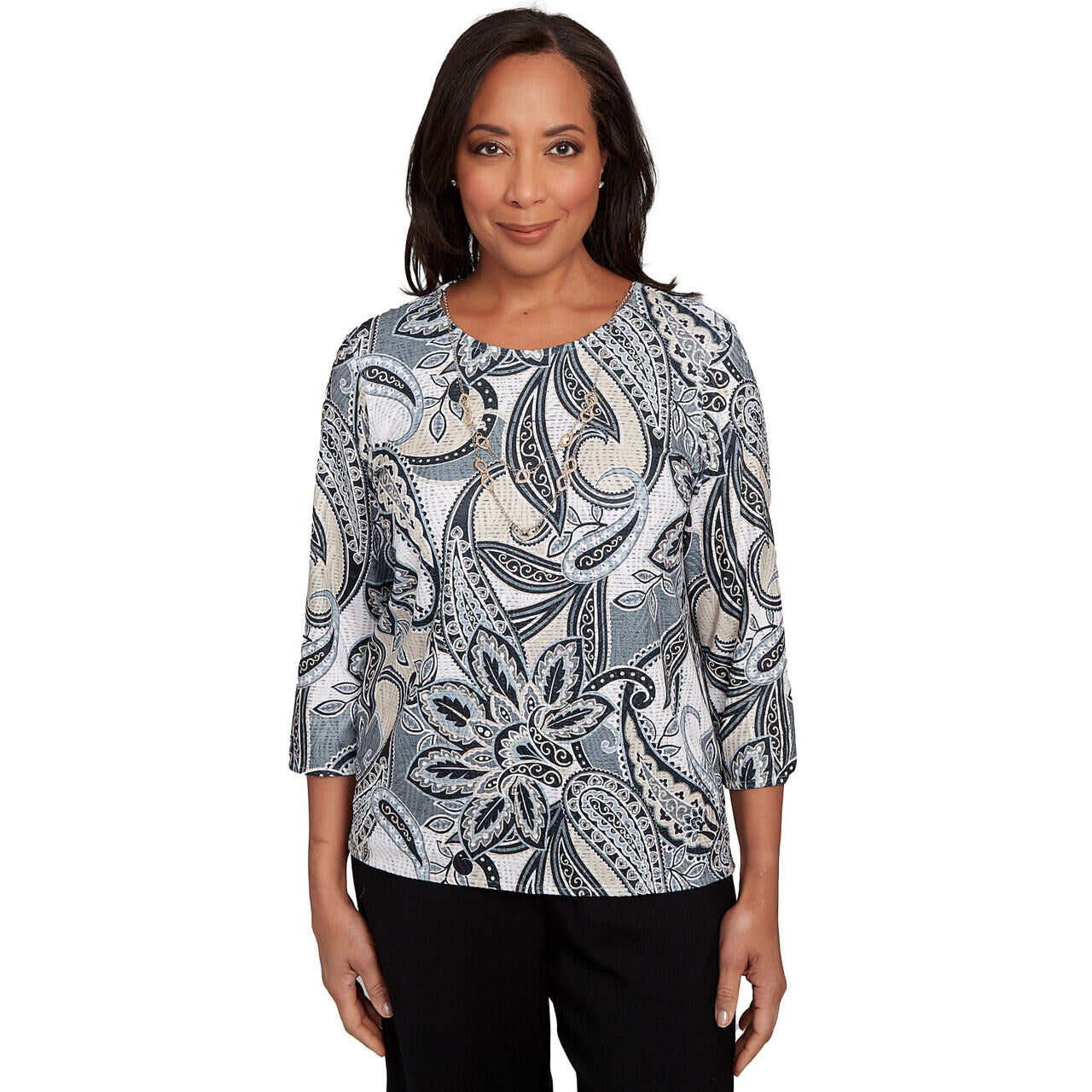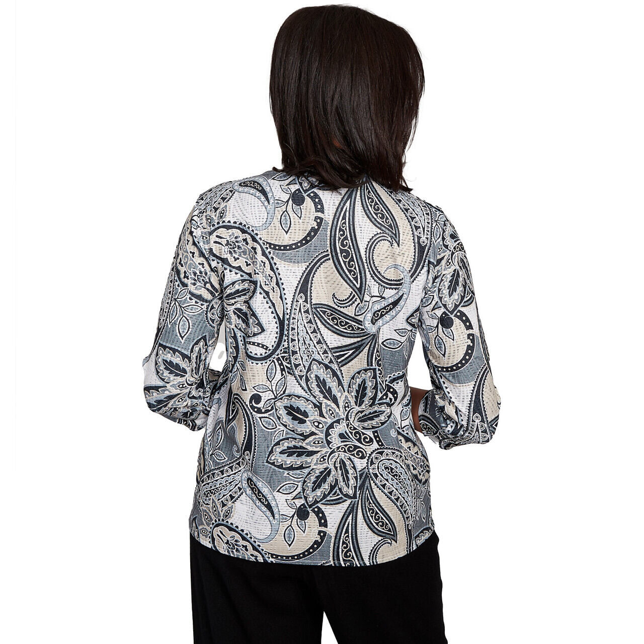 This versatile reversible top offers both a paisley and animal skin print, giving you two chic looks in one. Featuring a detachable necklace, three-quarter sleeves, and a straight hemline, it's the perfect choice for fashion and fun; wear it one way for a bold statement, then flip it for a whole new style.