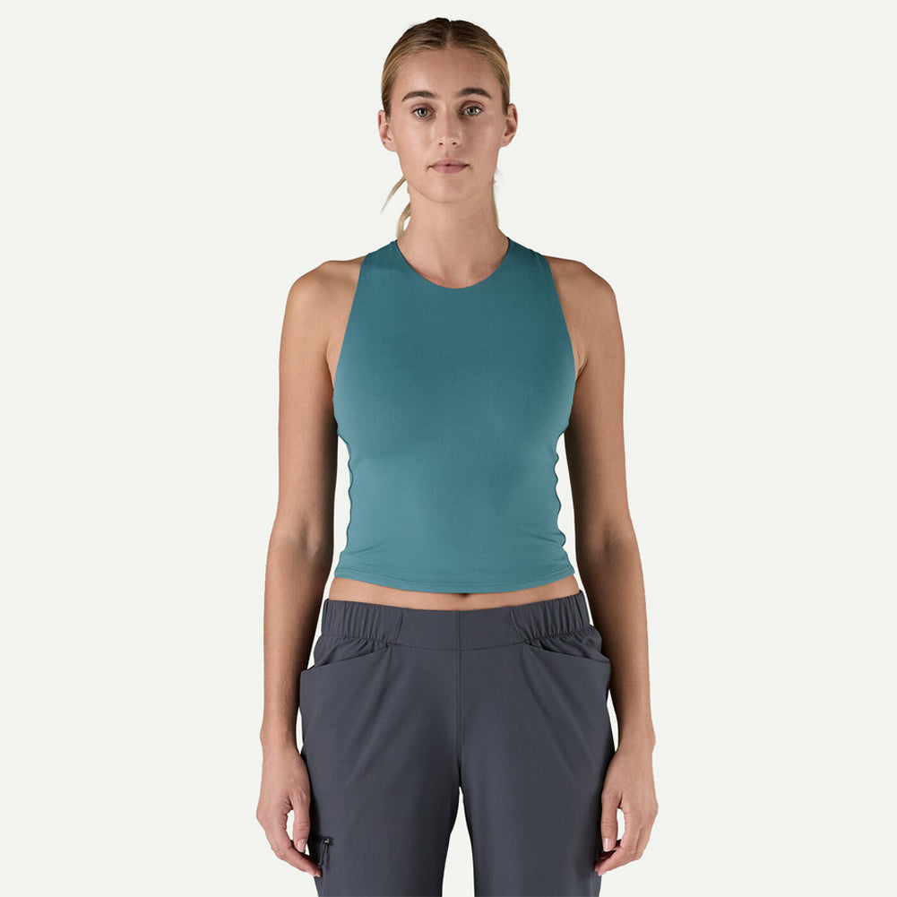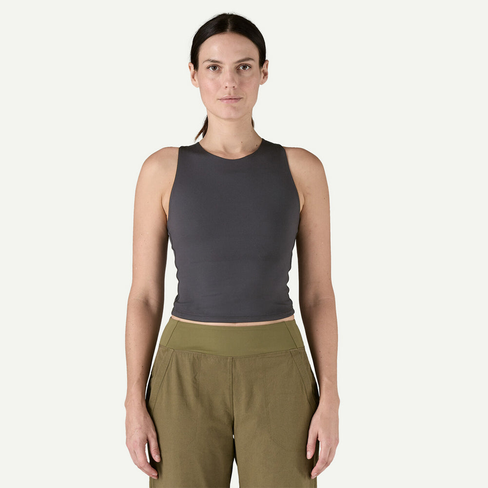 Gentle yet compressive double-layered fabric provides passive support; this tank pairs nicely with a sports bra for higher-impact activities