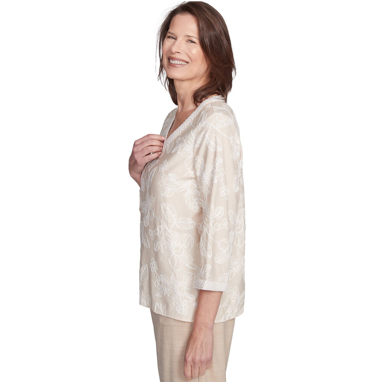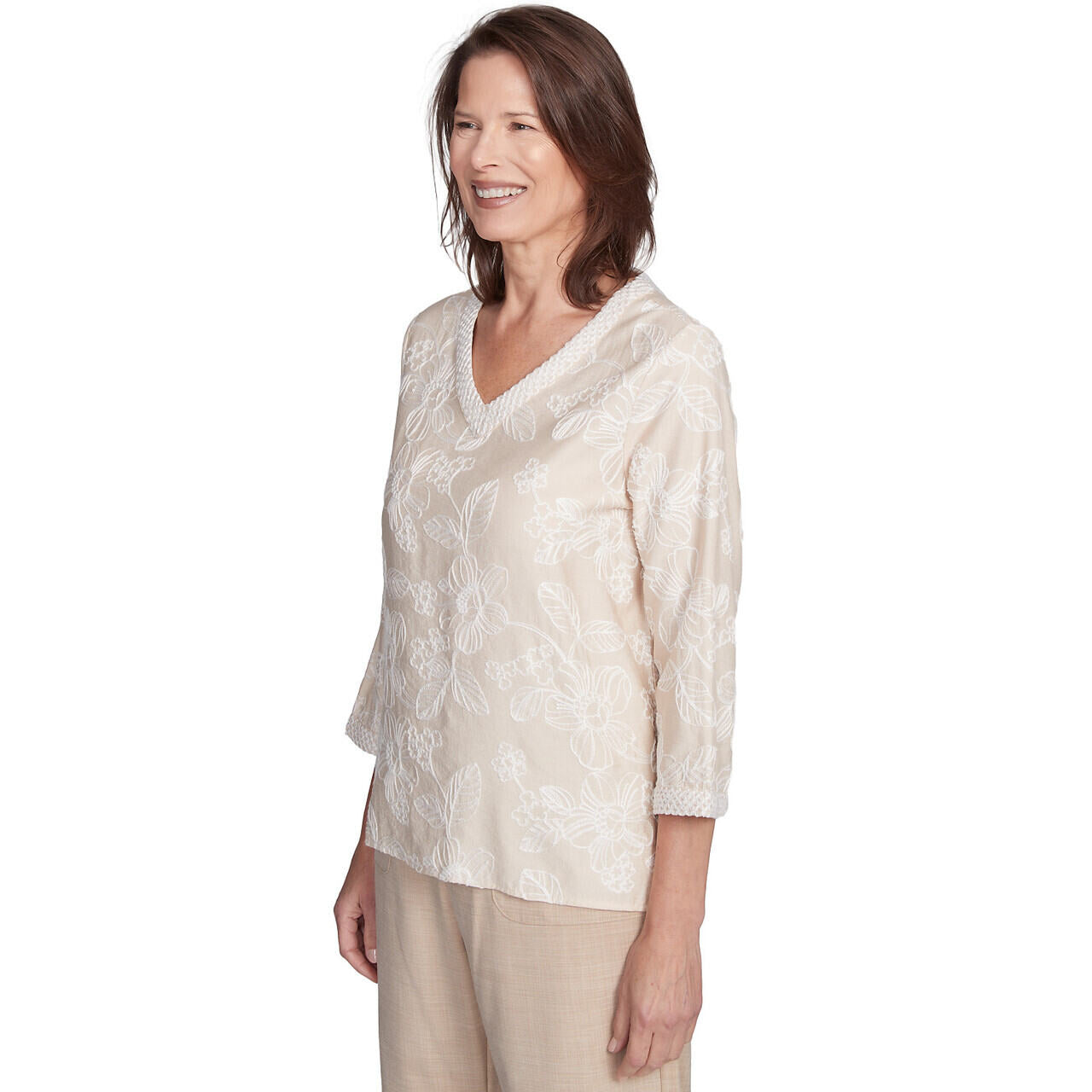 Women's Tossed Floral Embroidery V-Neck Top - 88442