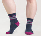 A Fall mood wraps this sock in autumnal stripes. Made of midweight, terry loop Merino Wool for multi - season activity (including lounging), the Women’s Multi Stripe Cushioned Micro Crews wraps the lower legs, peeking out just over to top of a boot or high top — no adjusting throughout the day required.