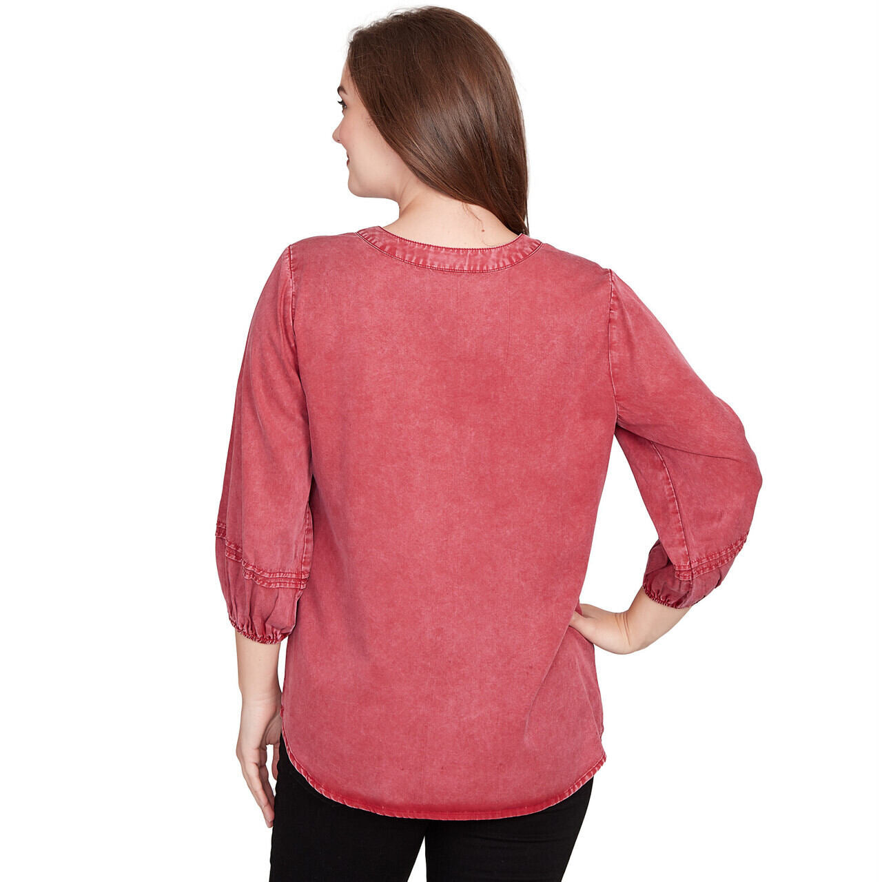 Elevate your look with this charming blouse! Crafted from wonderfully soft Tencel(TM) Twill, it drapes beautifully and feels amazing to wear. The unique folk embroidery along the front and sleeves gives it a lovely bohemian spirit. It has a classic button-up front and a chic V-neck band collar. Easy to wear, effortlessly stylish!
