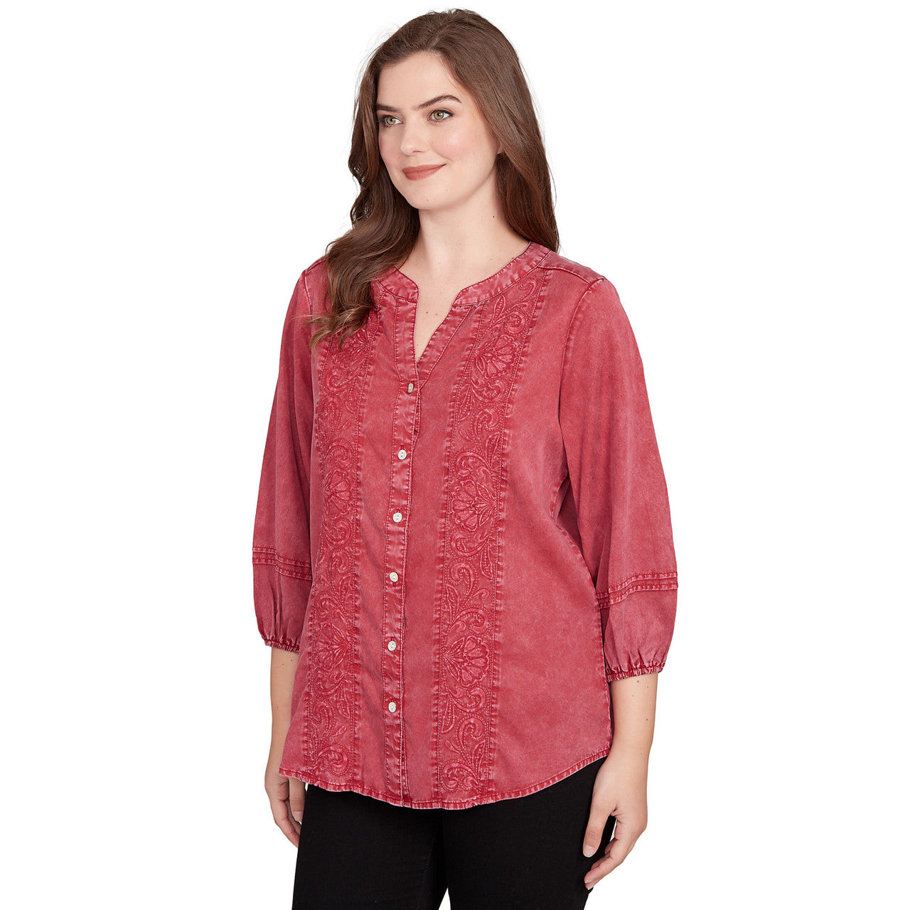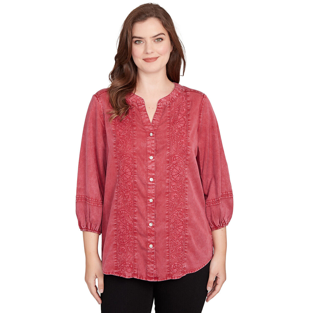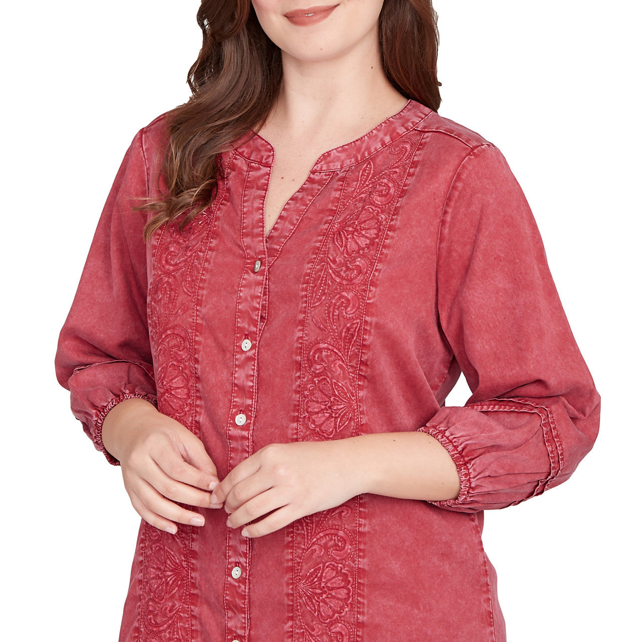 Women's Artisan Embroidered Button Front Blouse - 23141