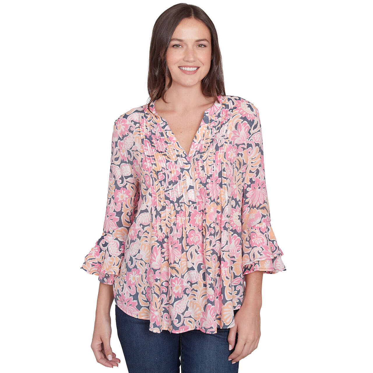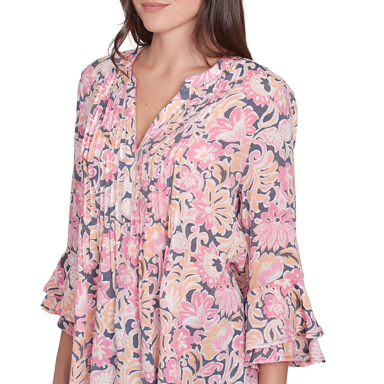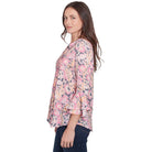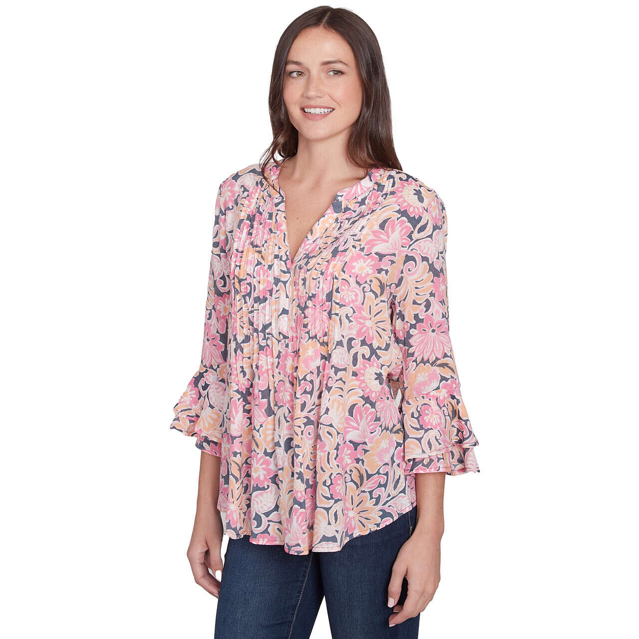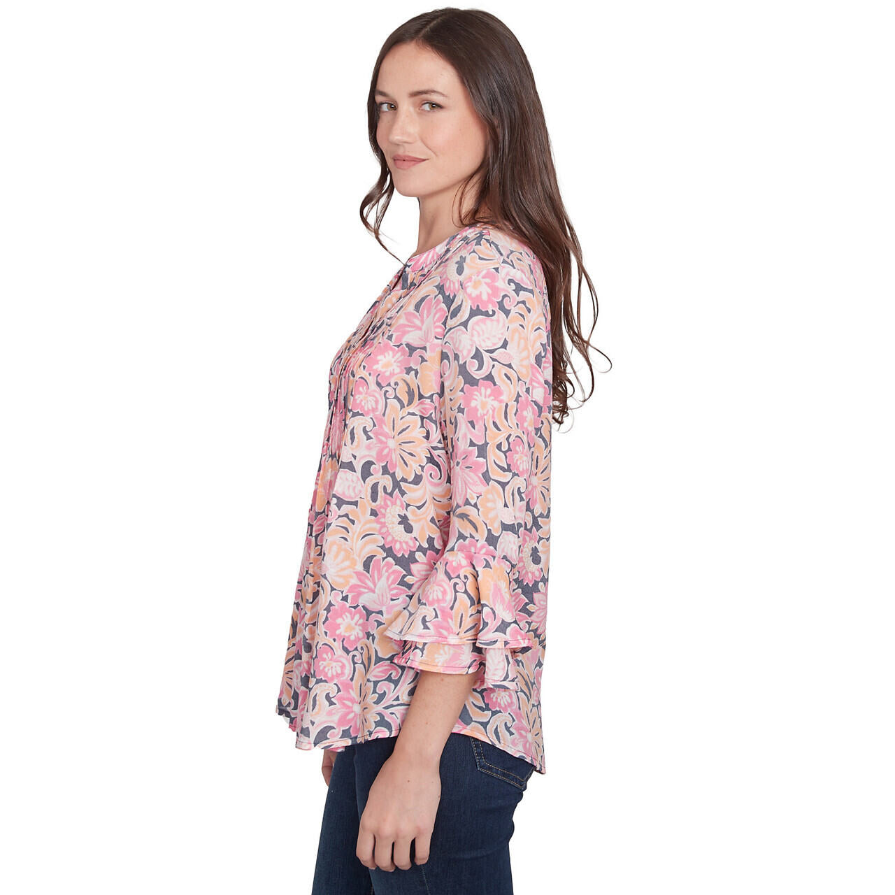Women's Garden Floral Ruffle Sleeve Henley Top - 35442