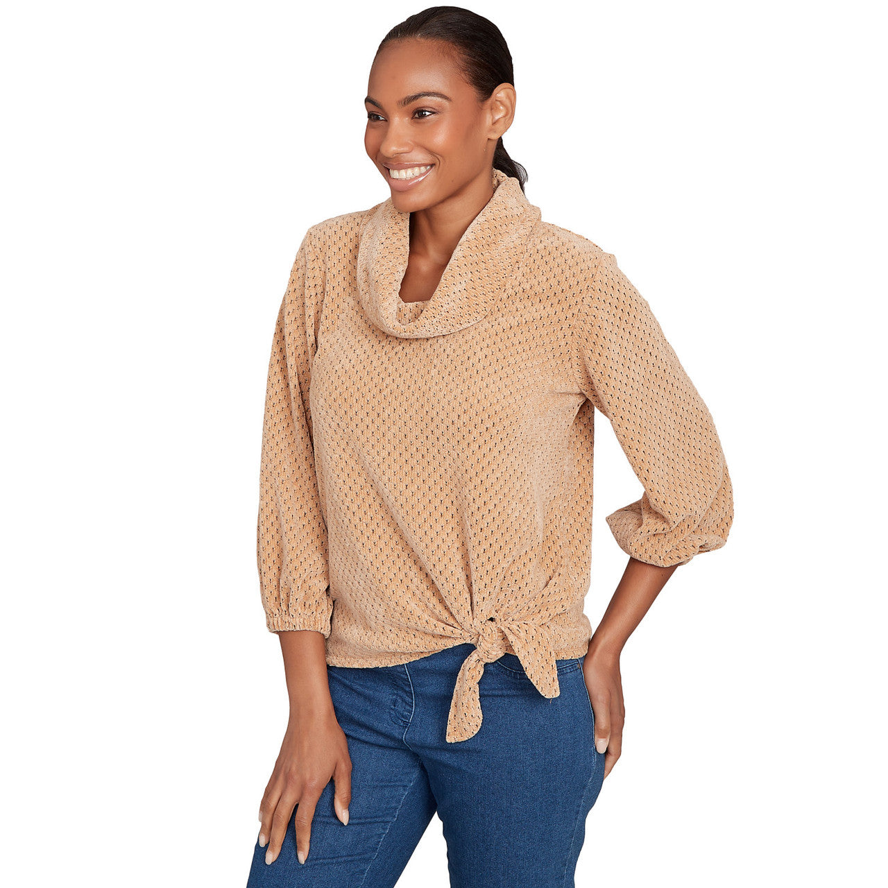 Women's Honeycomb Chenille Cowl Neck Top - 26156