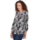 Women's Monotone Palms Puff Print Side Tie Top - 40457