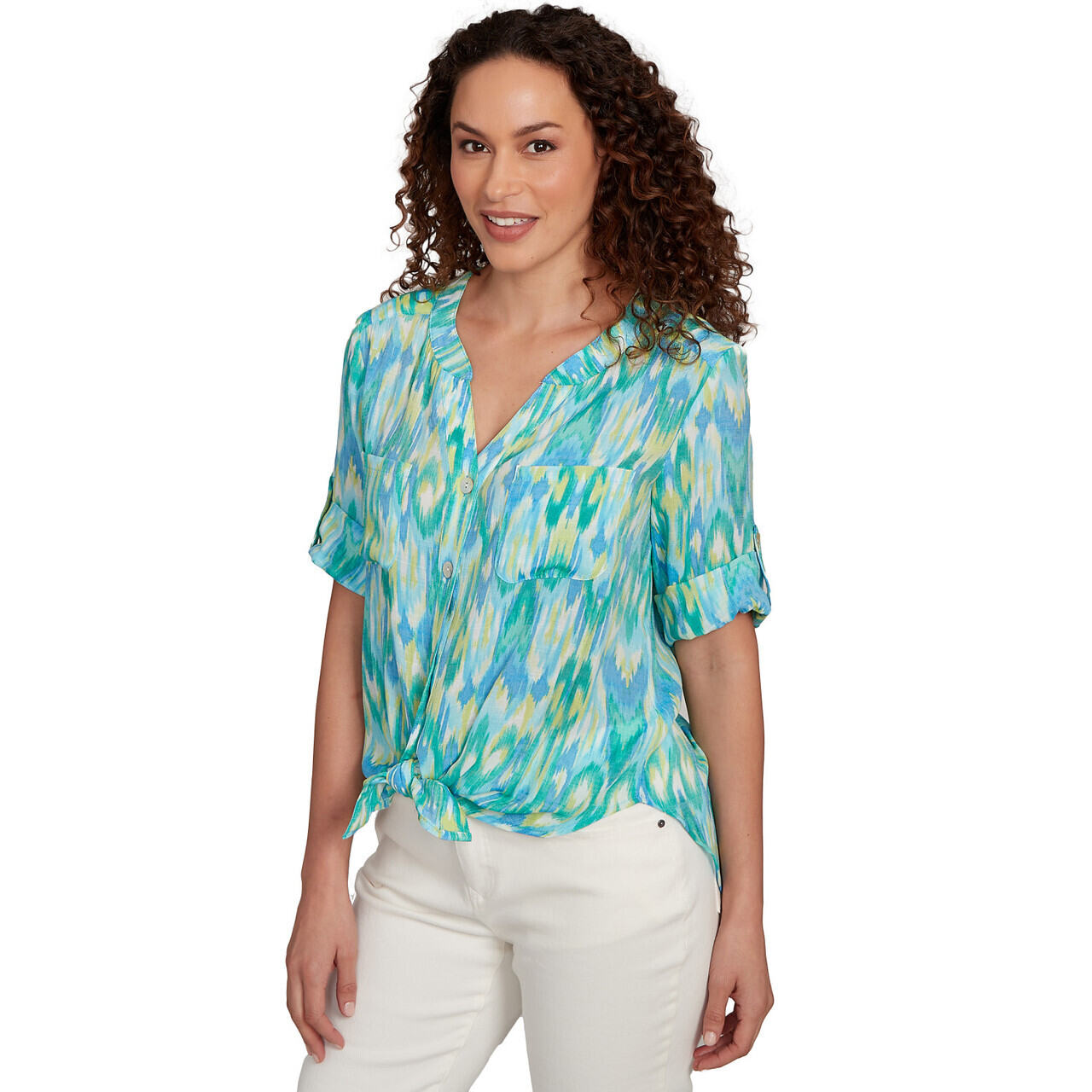Women's Paradise Ikat Button Tie Front Top - 38446